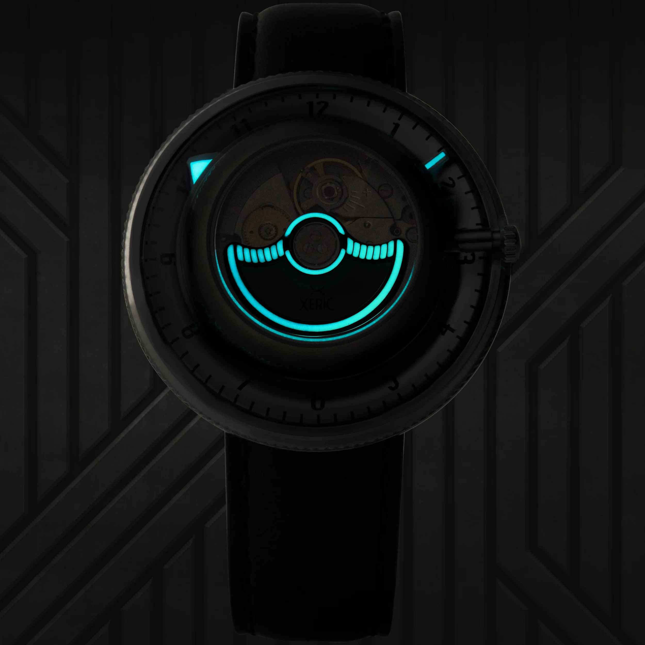 In order to create the Invertor, we developed a new proprietary module for the Miyota 9000 calibre automatic movement. The module mechanically makes the watch run backwards, but when the movement is positioned in the case upside down, time reads correctly.