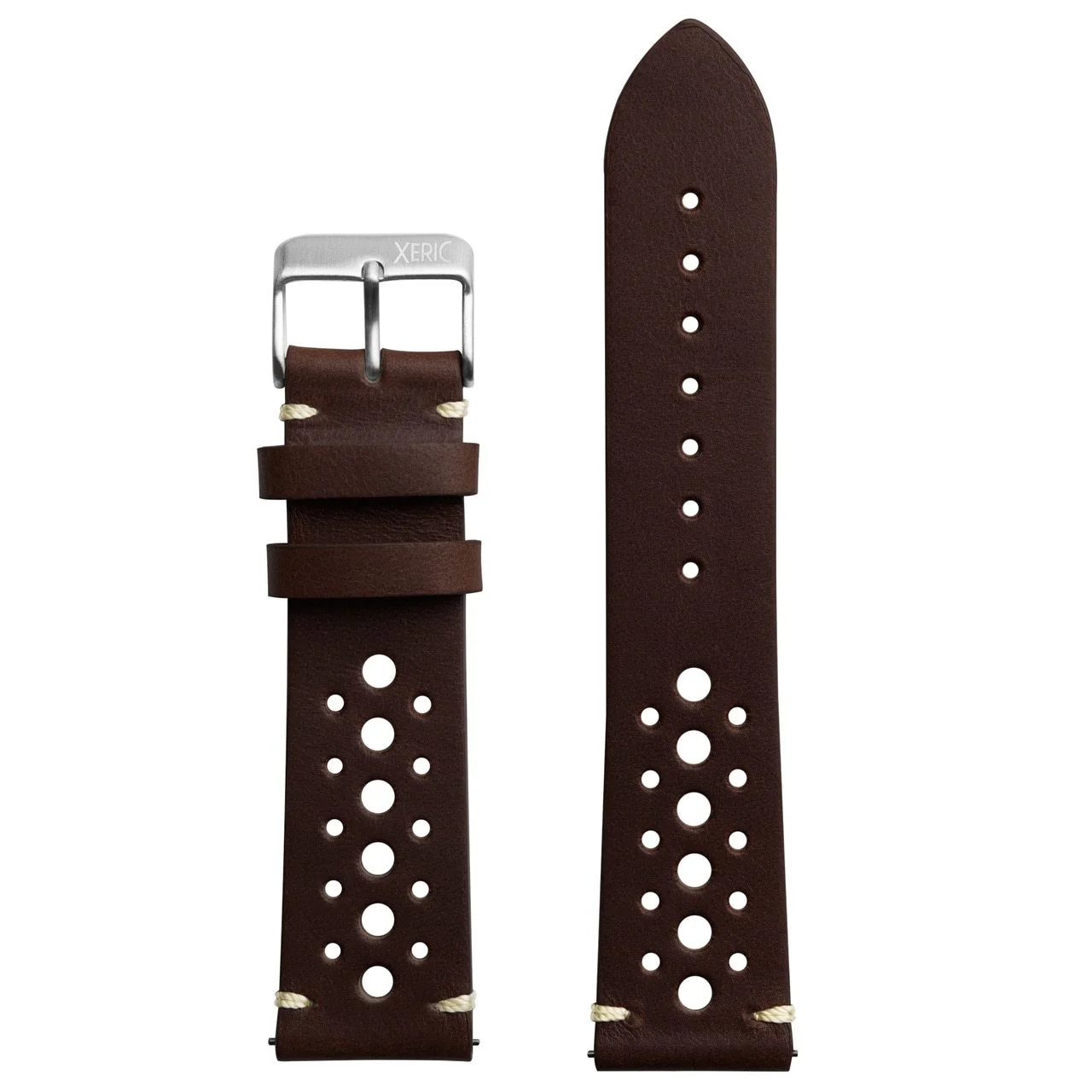Xeric 20mm Horween Leather Racing Dark Brown Strap Silver Buckle