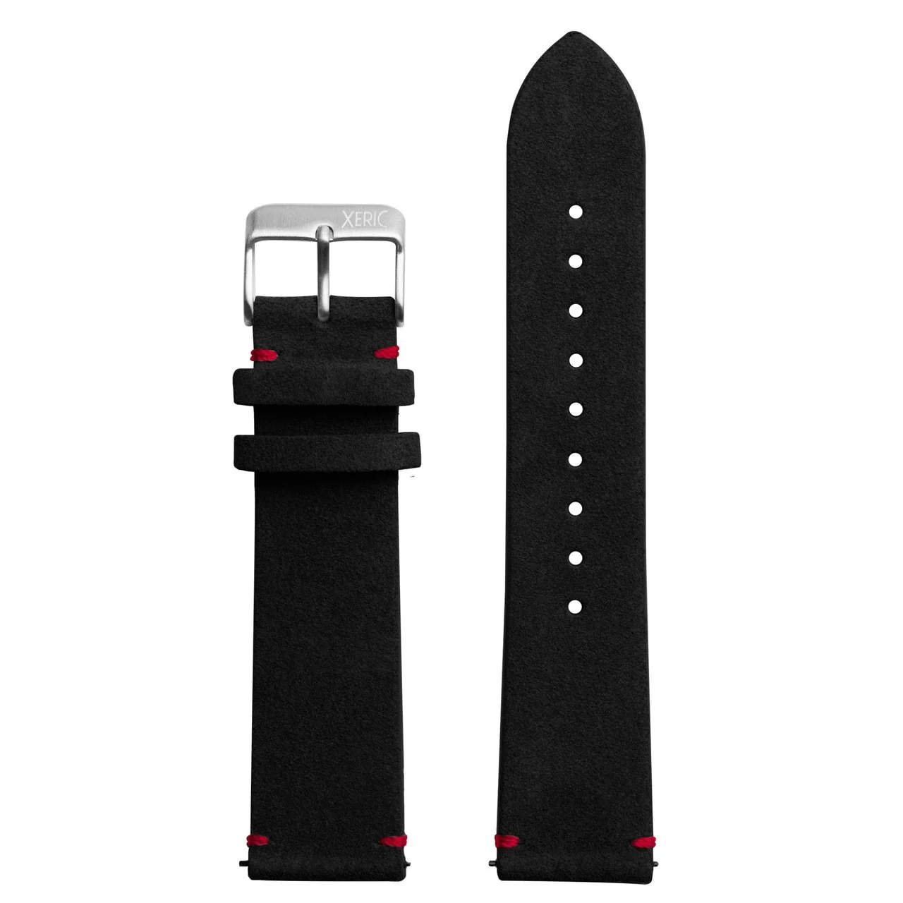 -70%Xeric 20mm Italian Suede Black Red Strap Silver Buckleā